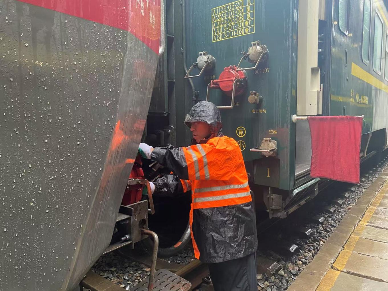 此外,北京车辆段北京西站检修车间启动不良天气应急预案。工作人员穿梭于旅客列车之间,检查制动、电气等关键部件,为旅客安全出行筑牢安全防线。
